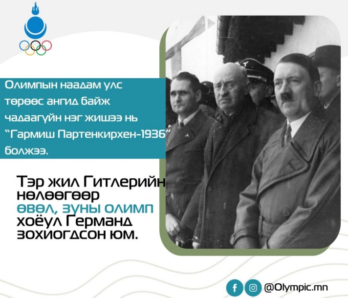 Гитлер Германы Засгийн эрхэнд гараад спортоор дамжуулан нацист дэглэмийн хүч чадлыг дэлхий нийтэд харуулахыг хүссэн. Түүний өмнөөс үгүй гэж хэлж чадах хүч тухайн үеийн Олон улсын олимпын хороо /ОУОХ/-нд байсангүй. Өвлийн олимпын IV наадам Германы Бавари мужийн жижиг хот Гармиш Партенкирхенд болсон түүхтэй.